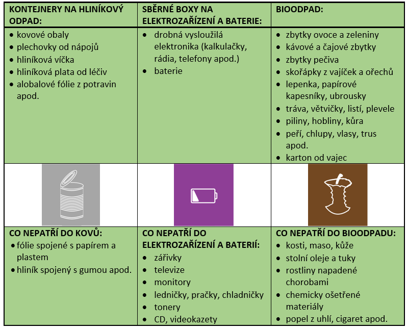 V příloze uvádíme základní podrobné informace, jak správně odpady třídit a kam který konkrétní odpad ukládat.
